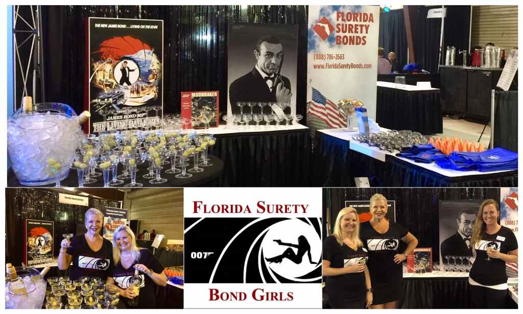 Another year, another great Expo. The expo theme this year was music…genres, eras, banks, songs, albums, etc. Of course, we are a bonding agency, so we had to go with the James BOND theme songs…the Florida Surety “Bond Girls” had a great time decorating our booth and serving our non-martini dirty martinis (aka Pinot Grigio