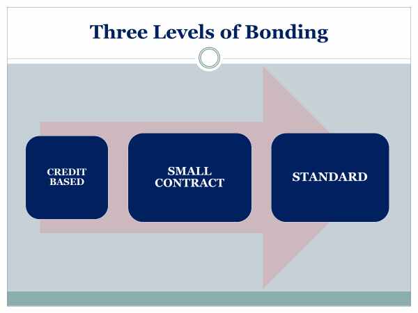1. CREDIT BASED “Quick” Applications (up to $500,000) Application Only, No Financials! 2. SMALL CONTRACT ($500,000 – $1,500,000) Application + Corporate Inhouse Financials, Personal Financial Statements and Tax Returns. 3. STANDARD (Over $1,500,000) Full File…. Application + Qualifying CPA Prepared Financial Statements, Personal Financial Statements, etc. This is the most competitive. More information means larger